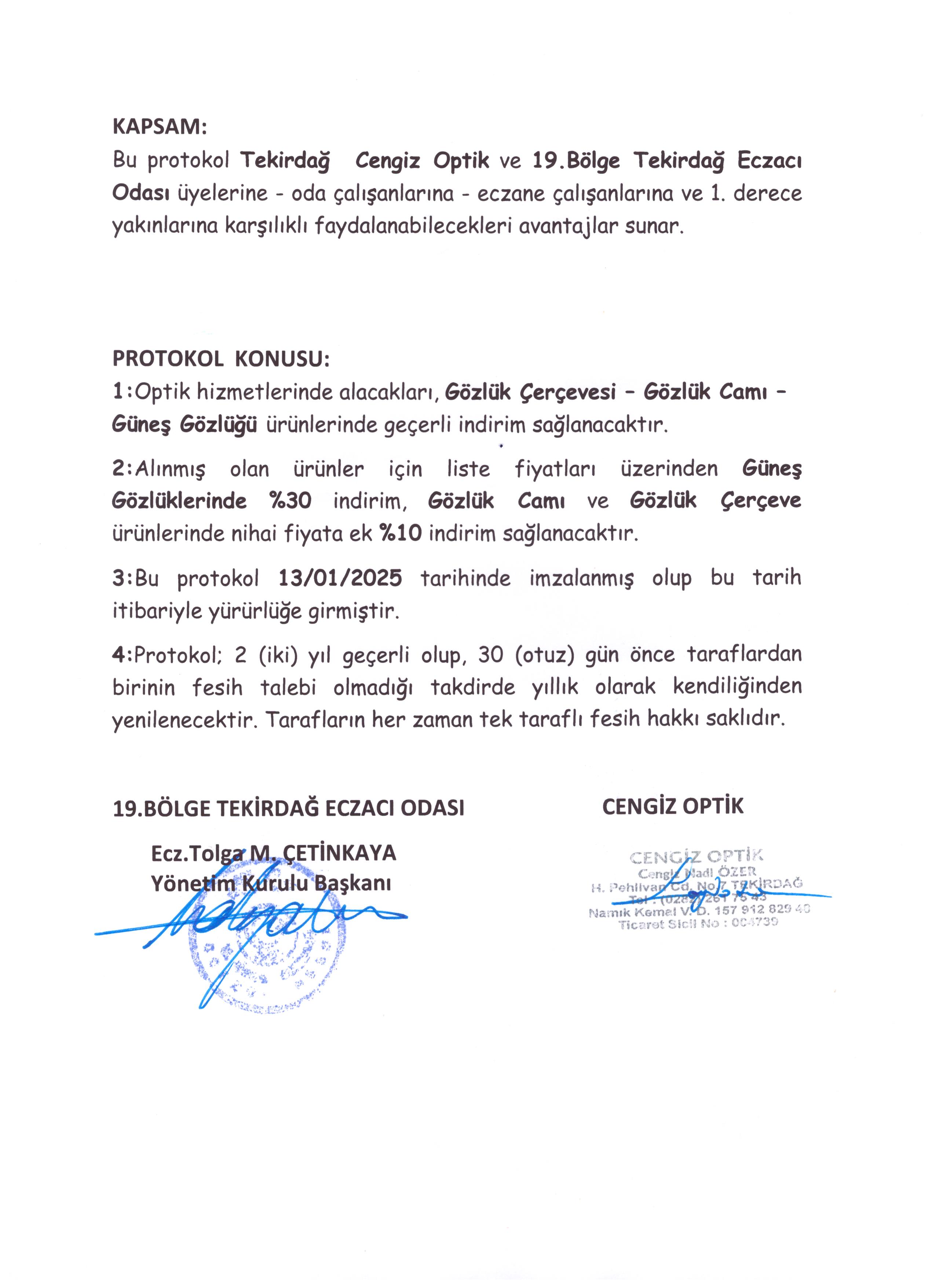 • CENGİZ OPTİK VE ODAMIZ ARASINDAKİ ANLAŞMA