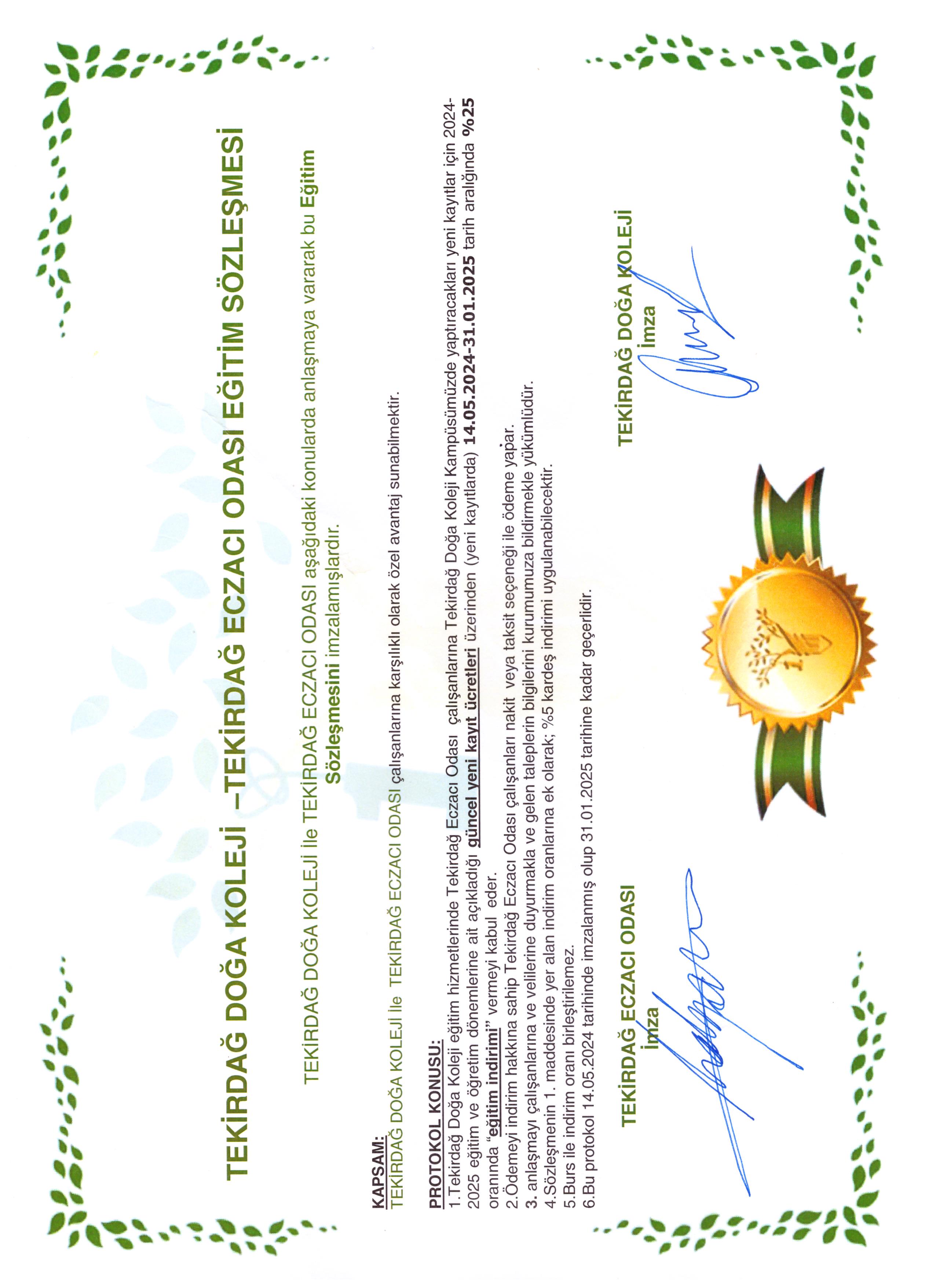 • DOĞA KOLEJİ VE ODAMIZ ARASINDAKİ ANLAŞMA