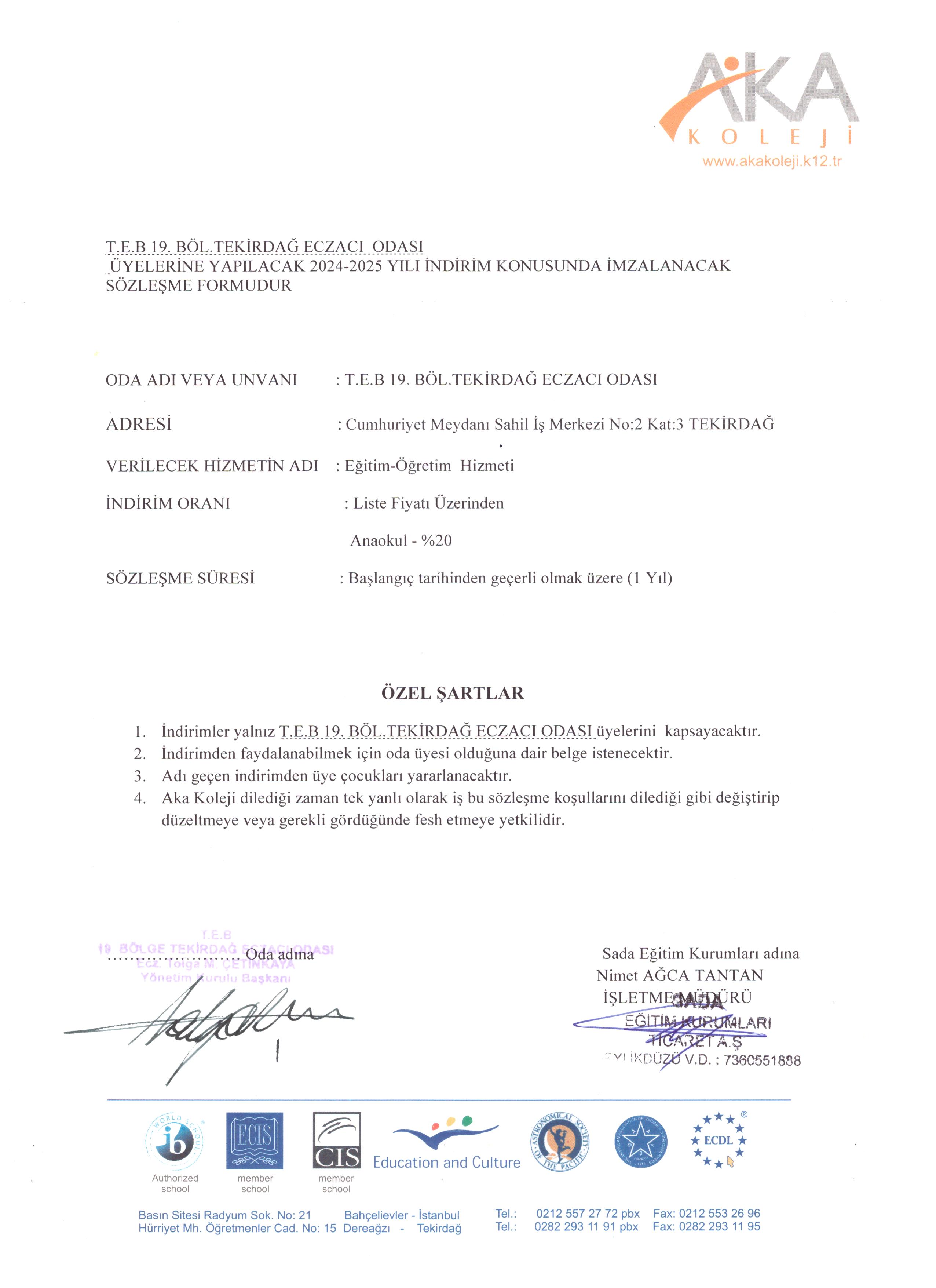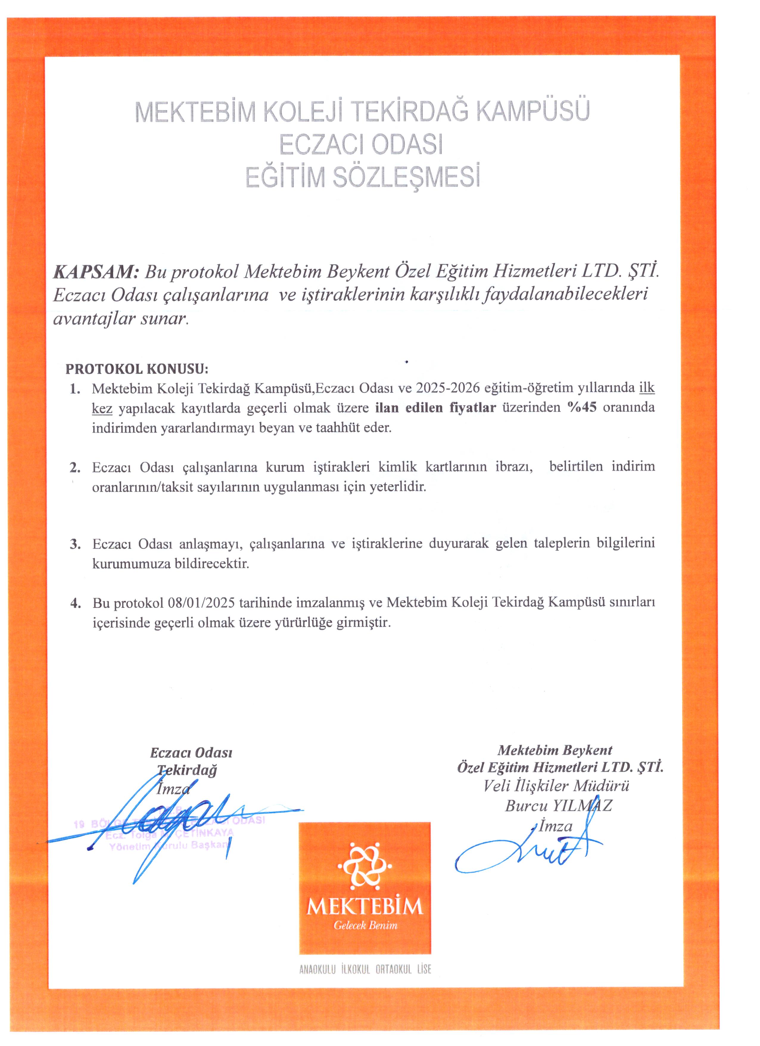 • MEKTEBİM KOLEJİ TEKİRDAĞ KAMPÜSÜ VE ODAMIZ ARASINDAKİ ANLAŞMA