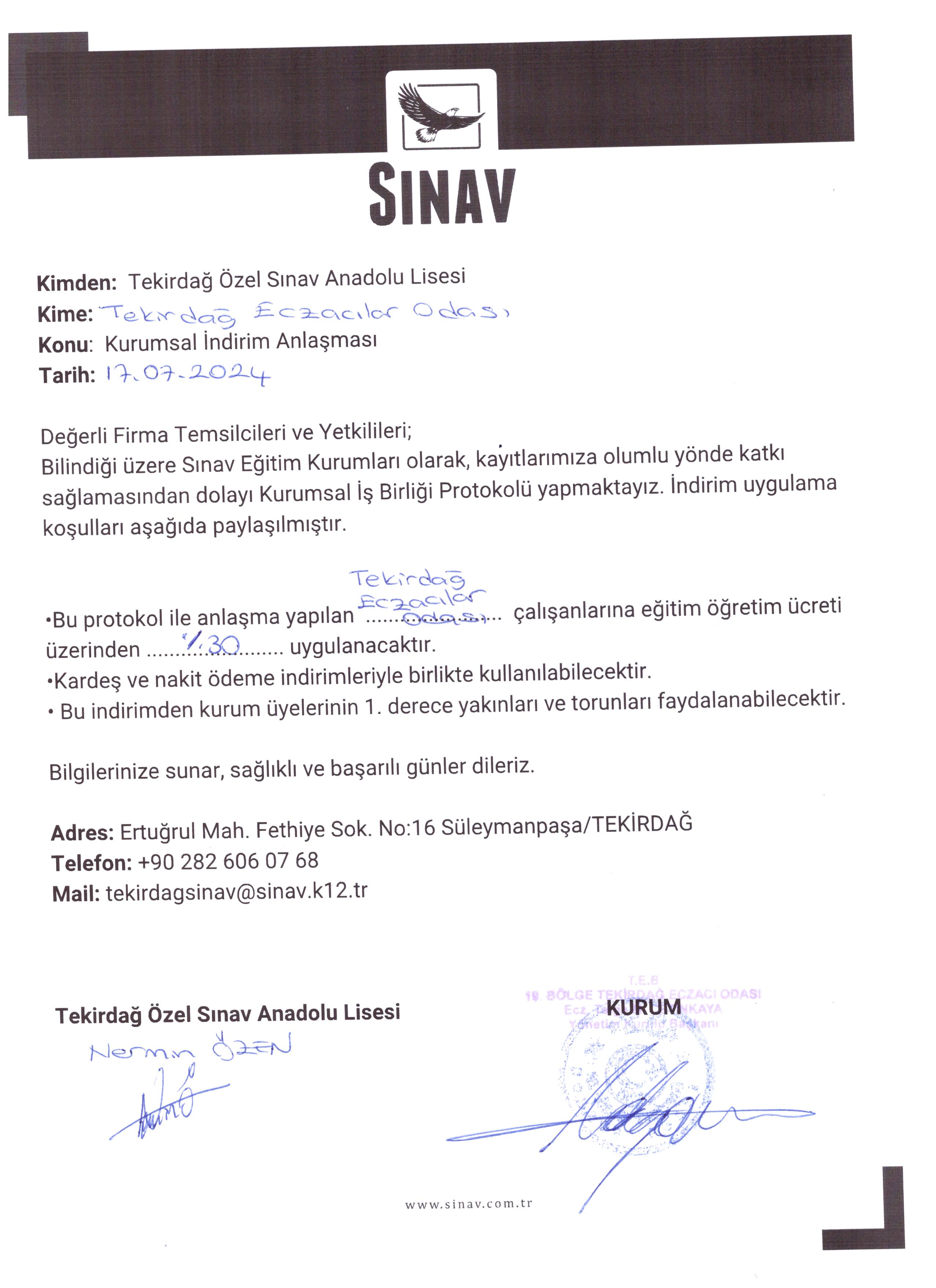• ÖZEL SINAV ANADOLU LİSESİ VE ODAMIZ ARASINDAKİ ANLAŞMA